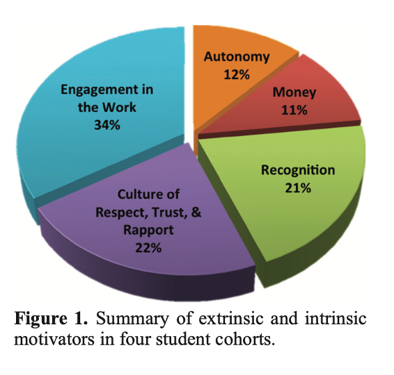Psychologically, motivation is divided into two categories: extrinsic and intrinsic. Extrinsic factors are “rewards” of sorts: money, recognition, promotion, etc. Intrinsic factors are internal: the desire to improve yourself, wanting to master a skill, feeling as if what you do matters. All of the items in the previous paragraph are intrinsic motivators. Extrinsic motivators are still important, because after all, it is a job, not charity. But they cannot be the determining factors for enjoyment and engagement.